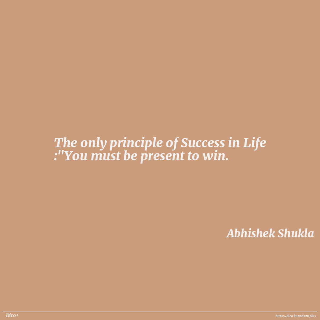 The only principle of Success in Life :"You must be present to win.