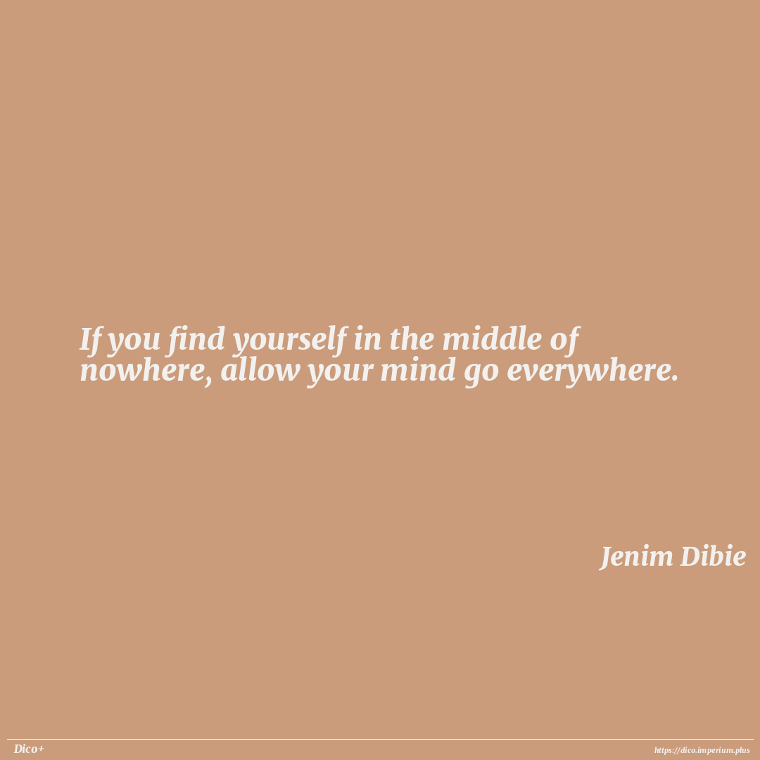 If you find yourself in the middle of nowhere, allow your mind go everywhere.