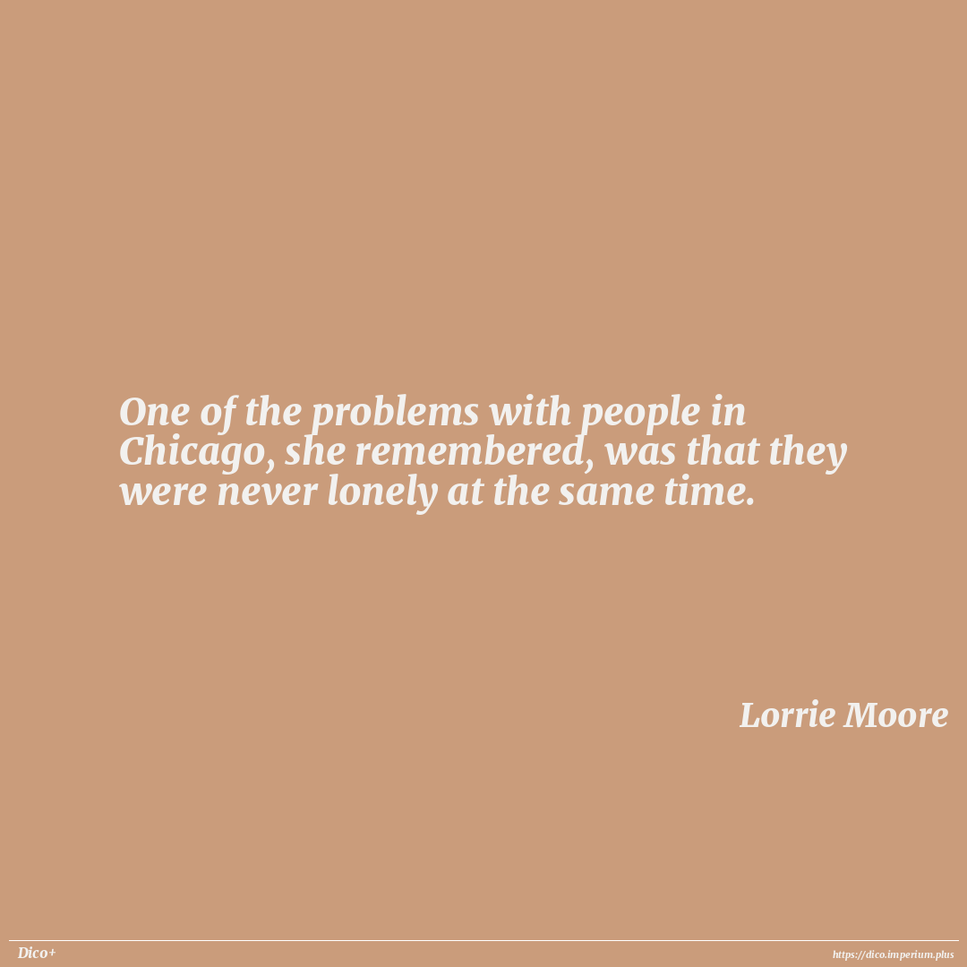 One of the problems with people in Chicago, she remembered, was that they were never lonely at the same time.