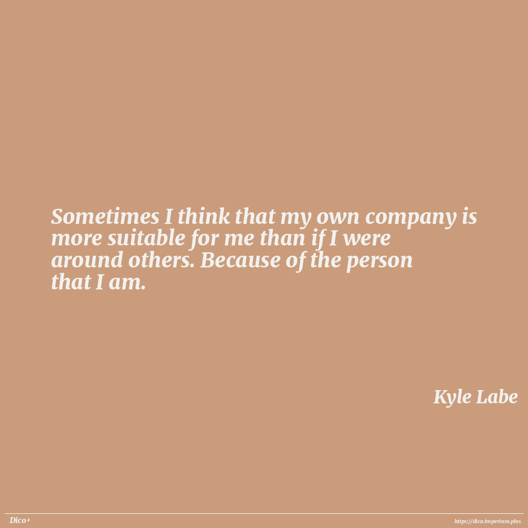Sometimes I think that my own company is more suitable for me than if I were around others. Because of the person that I am.