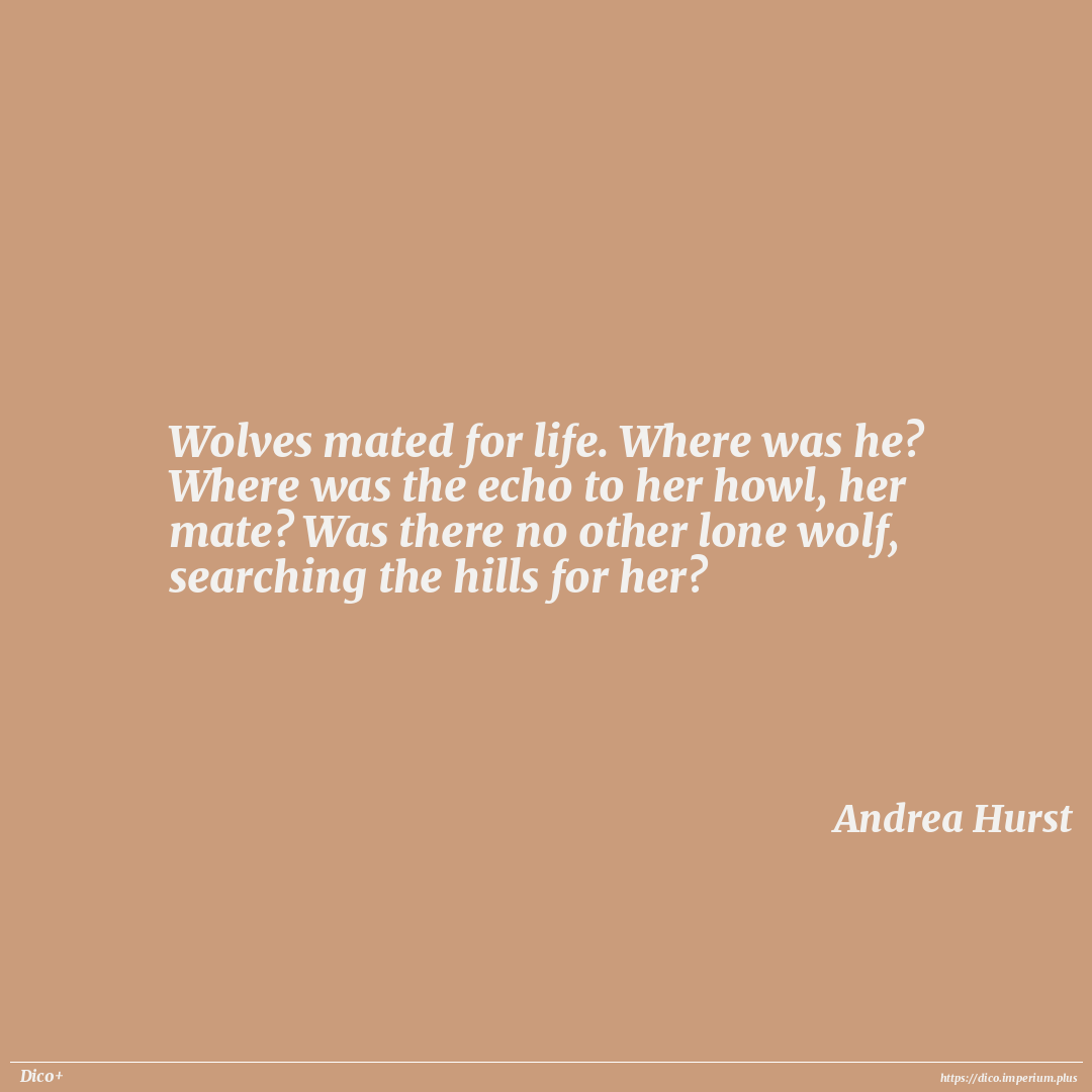Wolves mated for life. Where was he? Where was the echo to her howl, her mate? Was there no other lone wolf, searching the hills for her?