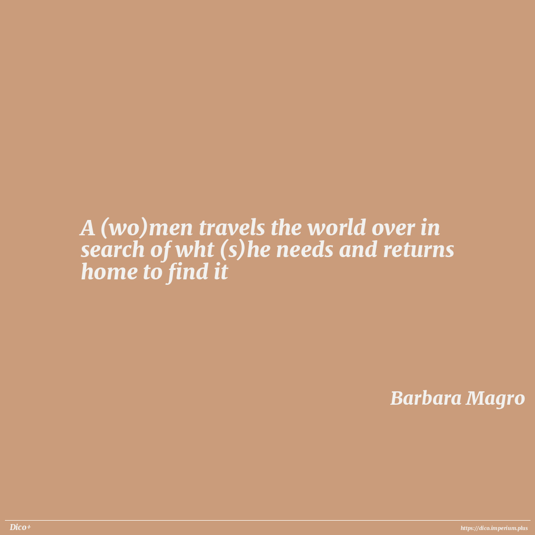 A (wo)men travels the world over in search of wht (s)he needs and returns home to find it