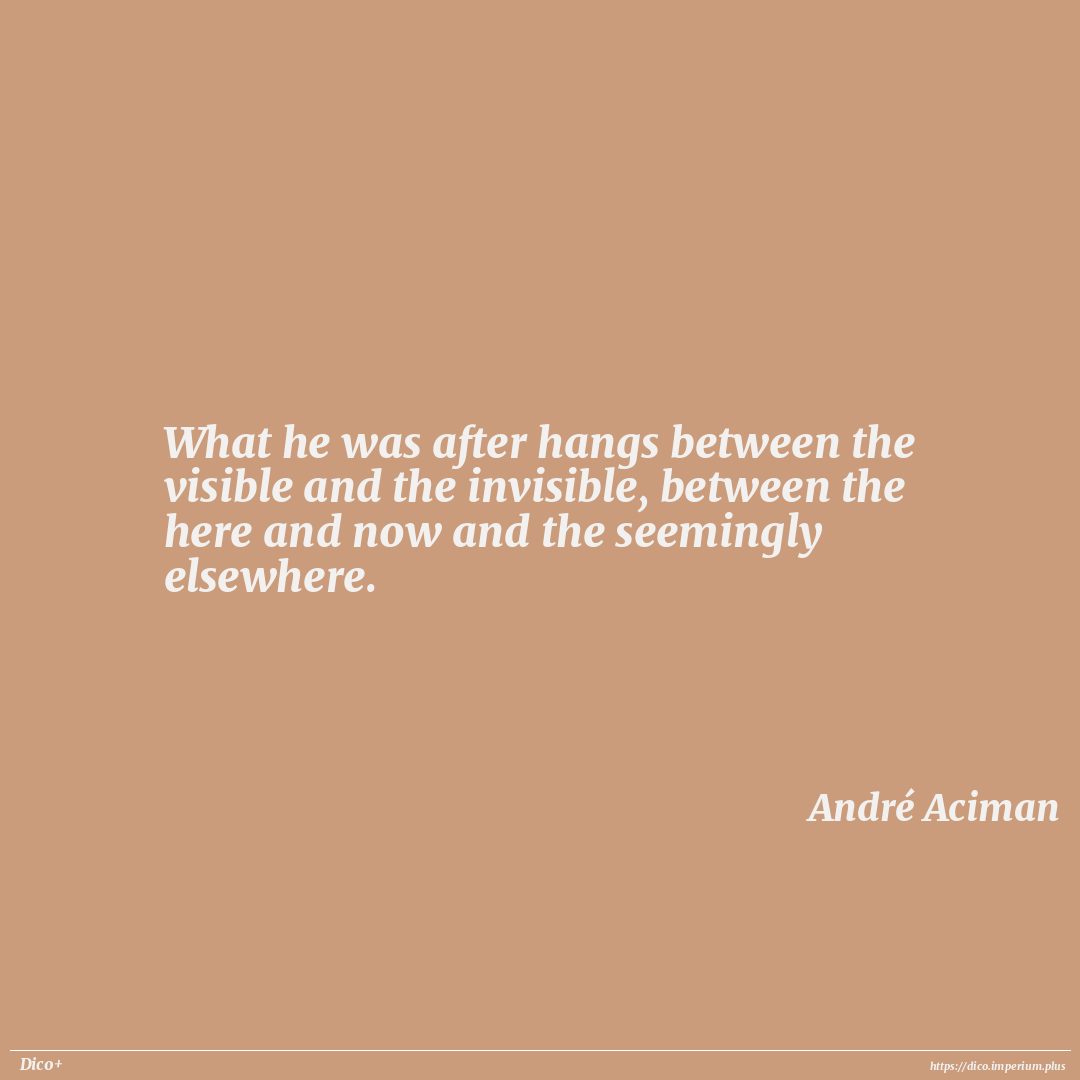 What he was after hangs between the visible and the invisible, between the here and now and the seemingly elsewhere.
