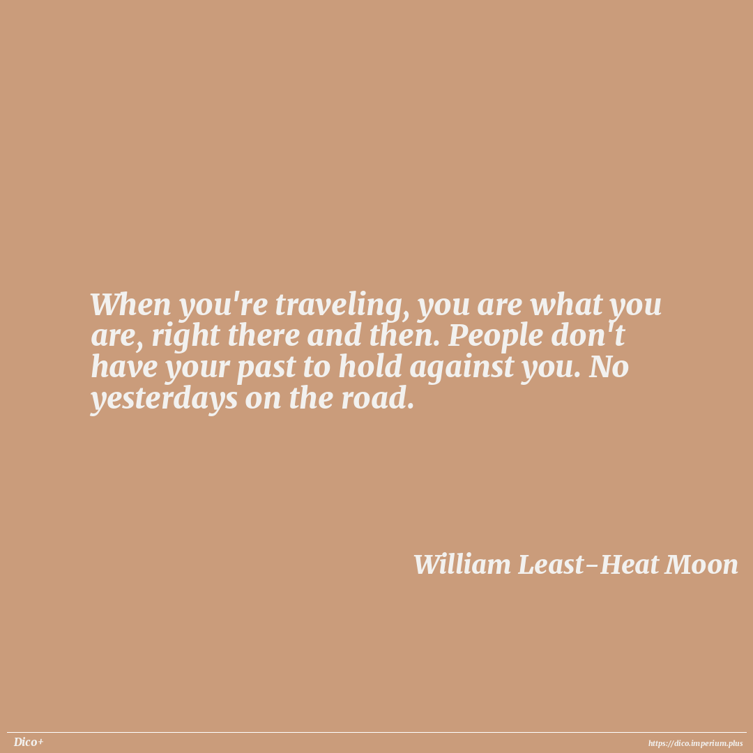 When you're traveling, you are what you are, right there and then. People don't have your past to hold against you. No yesterdays on the road.
