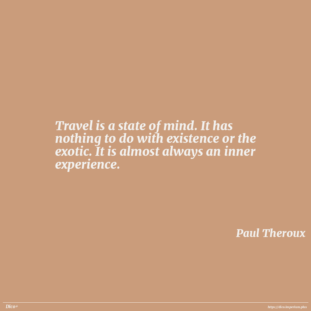 Travel is a state of mind. It has nothing to do with existence or the exotic. It is almost always an inner experience.