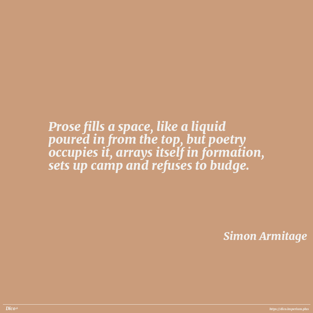 Prose fills a space, like a liquid poured in from the top, but poetry occupies it, arrays itself in formation, sets up camp and refuses to budge.