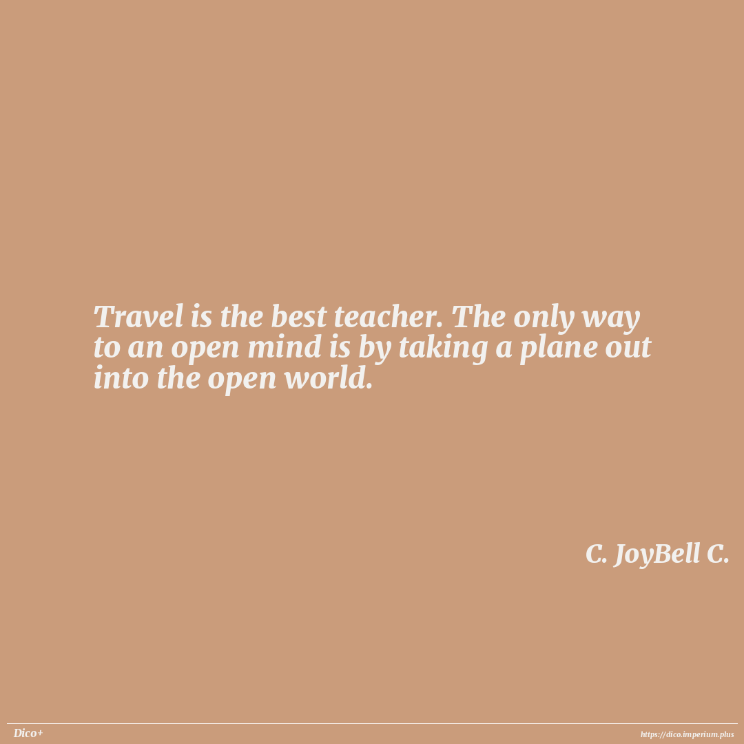 Travel is the best teacher. The only way to an open mind is by taking a plane out into the open world.