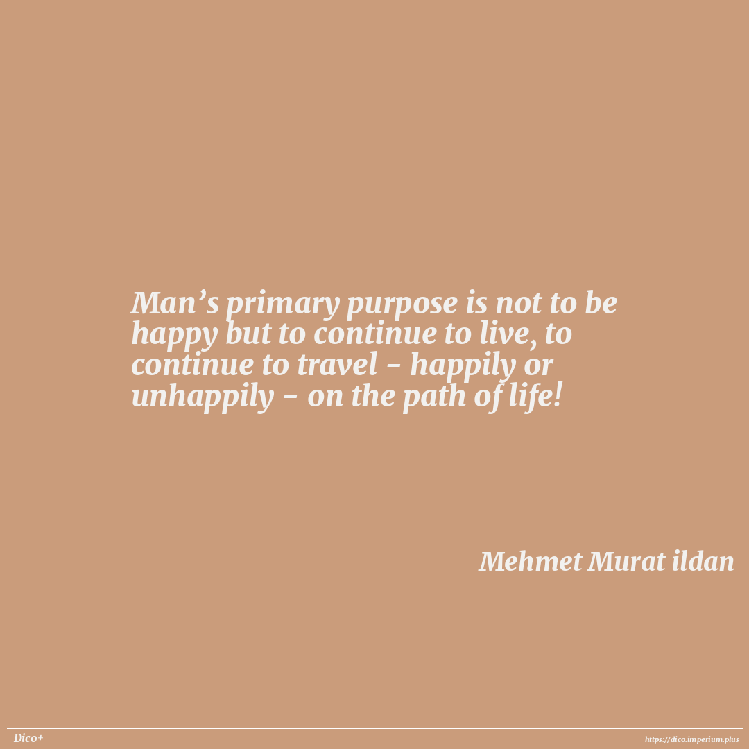 Man’s primary purpose is not to be happy but to continue to live, to continue to travel - happily or unhappily - on the path of life!