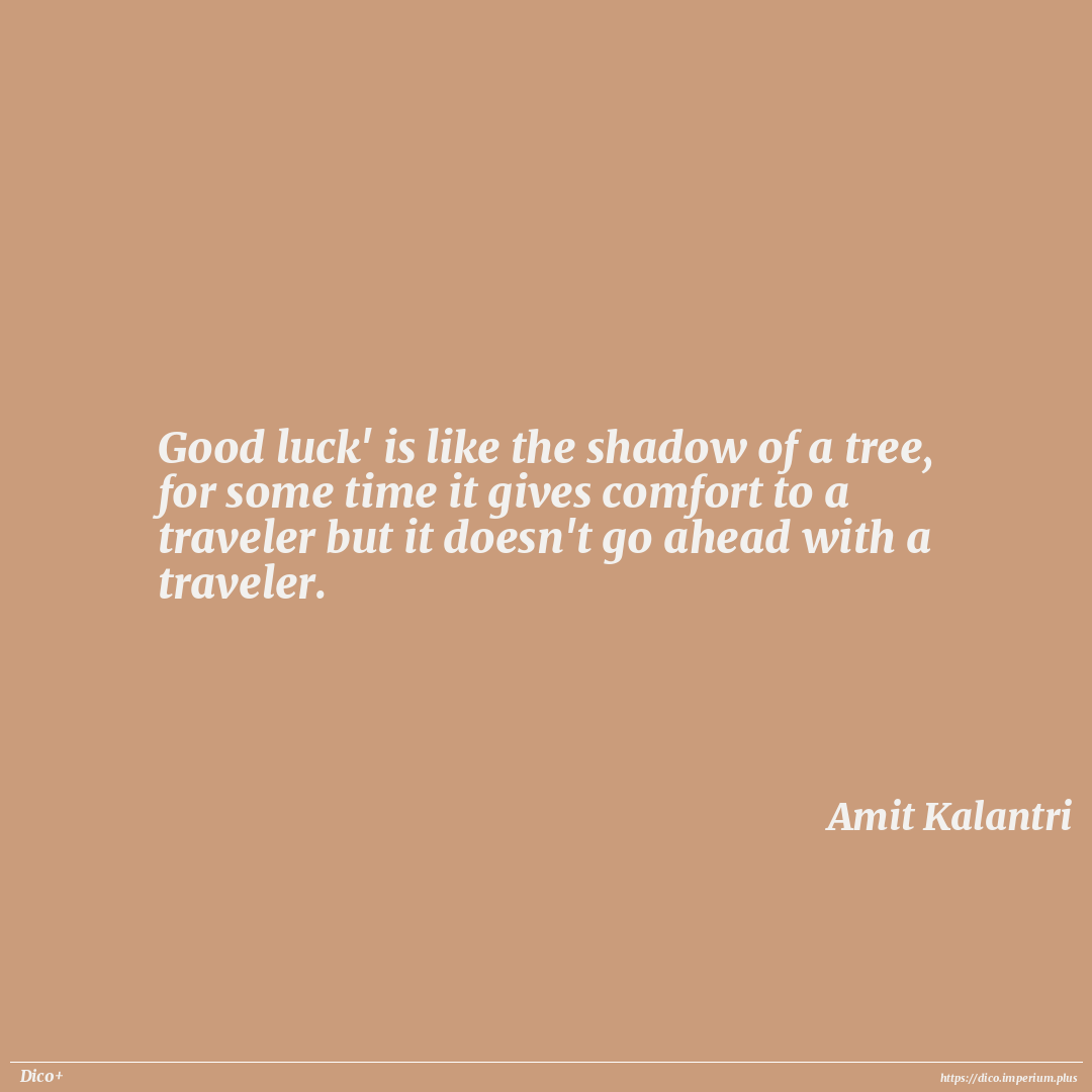 Good luck' is like the shadow of a tree, for some time it gives comfort to a traveler but it doesn't go ahead with a traveler.
