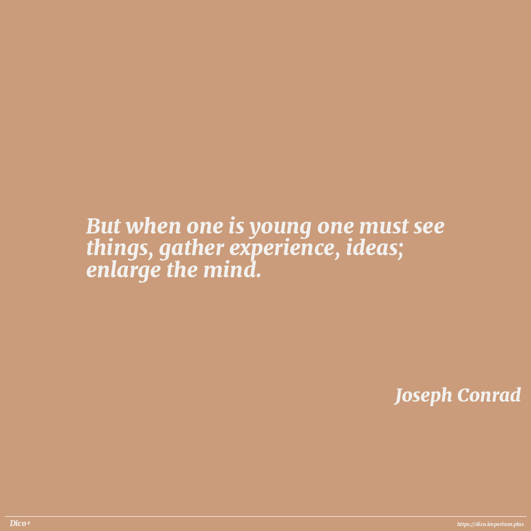 But when one is young one must see things, gather experience, ideas; enlarge the mind.