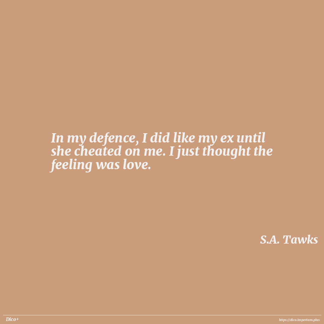 In my defence, I did like my ex until she cheated on me. I just thought the feeling was love.