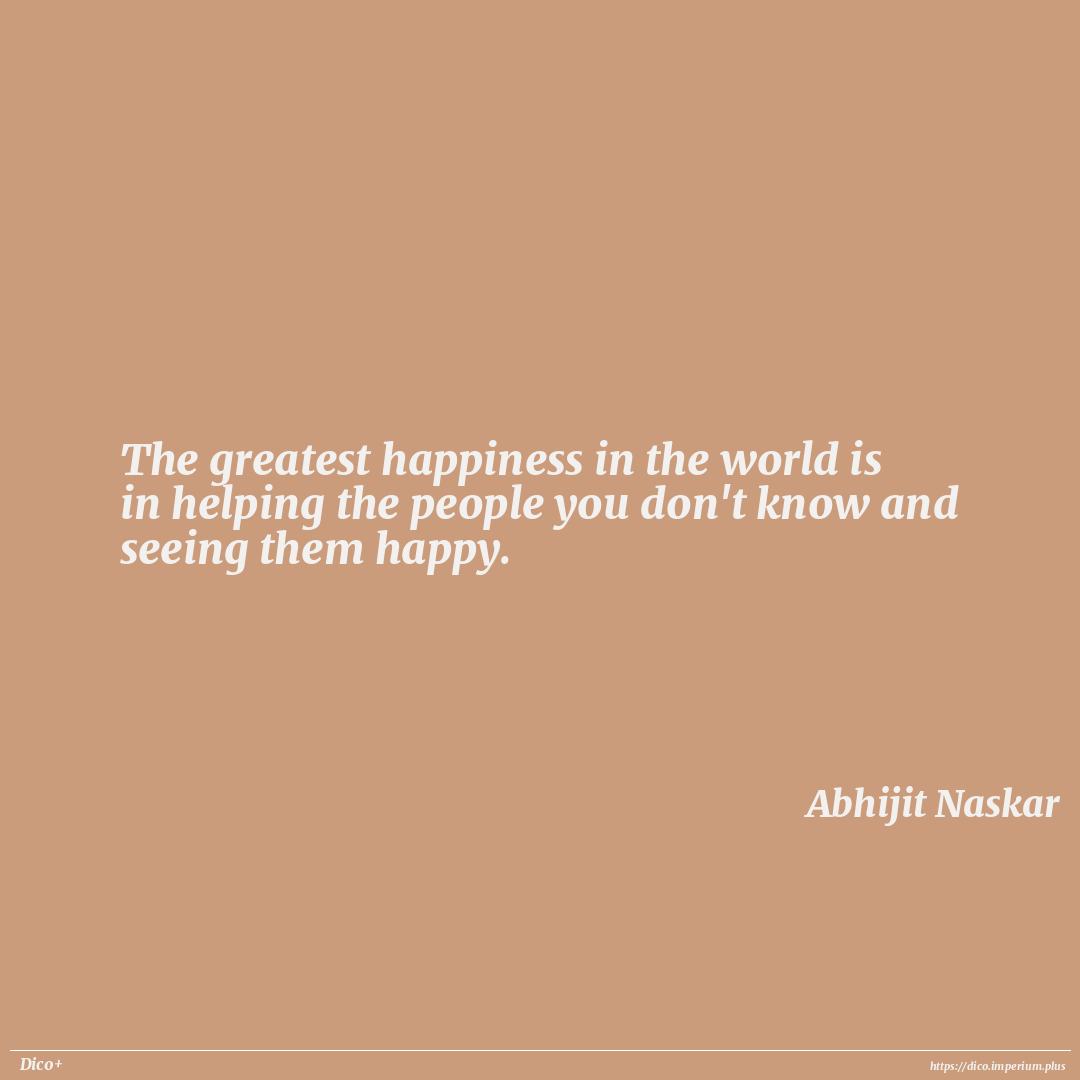 The greatest happiness in the world is in helping the people you don't know and seeing them happy.