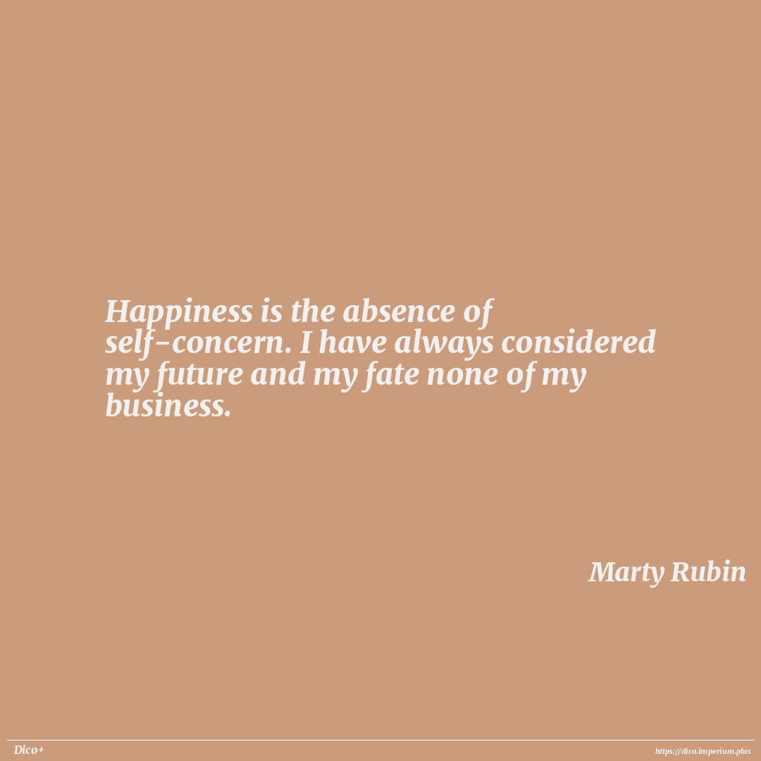 Happiness is the absence of self-concern. I have always considered my future and my fate none of my business.