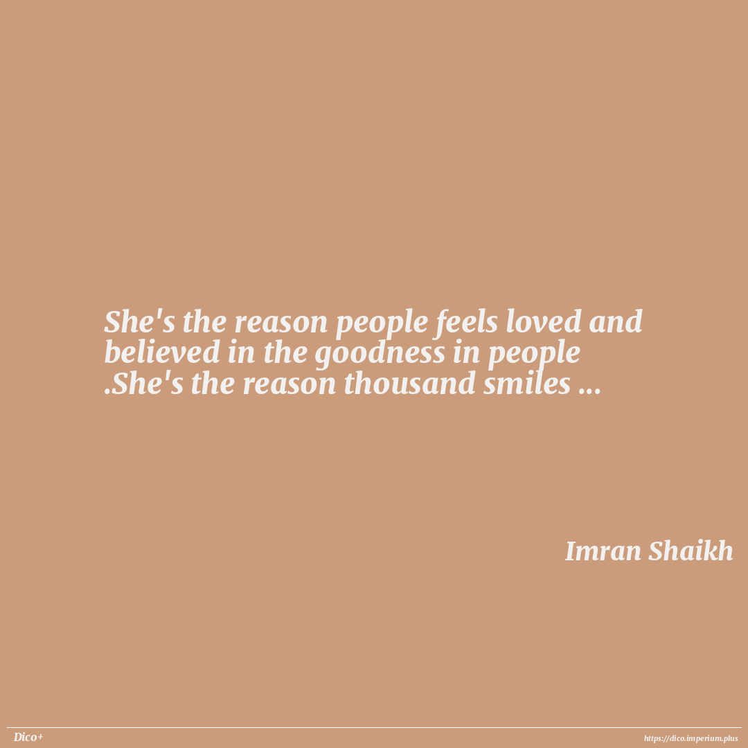 She's the reason people feels loved and believed in the goodness in people .She's the reason thousand smiles ...