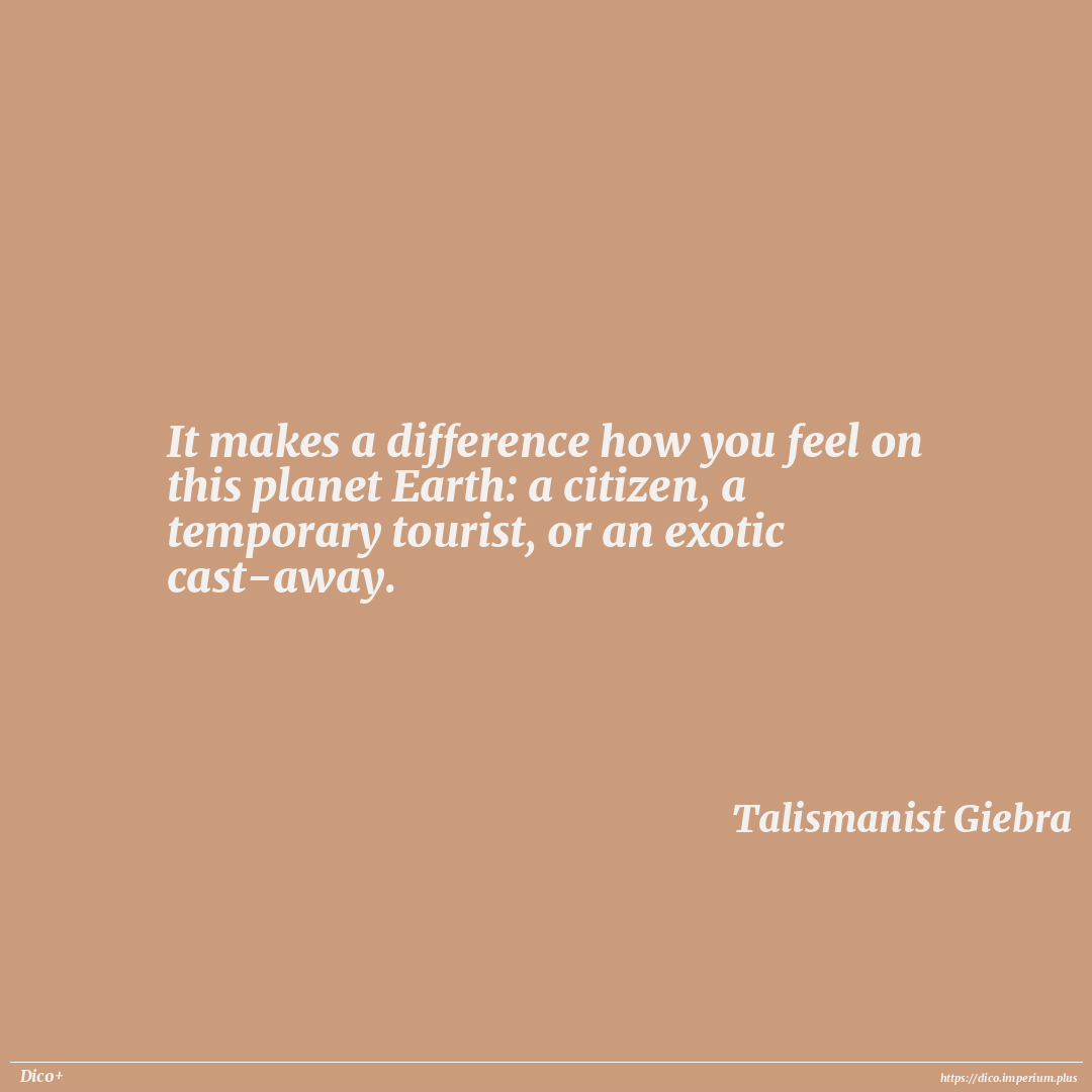 It makes a difference how you feel on this planet Earth: a citizen, a temporary tourist, or an exotic cast-away.
