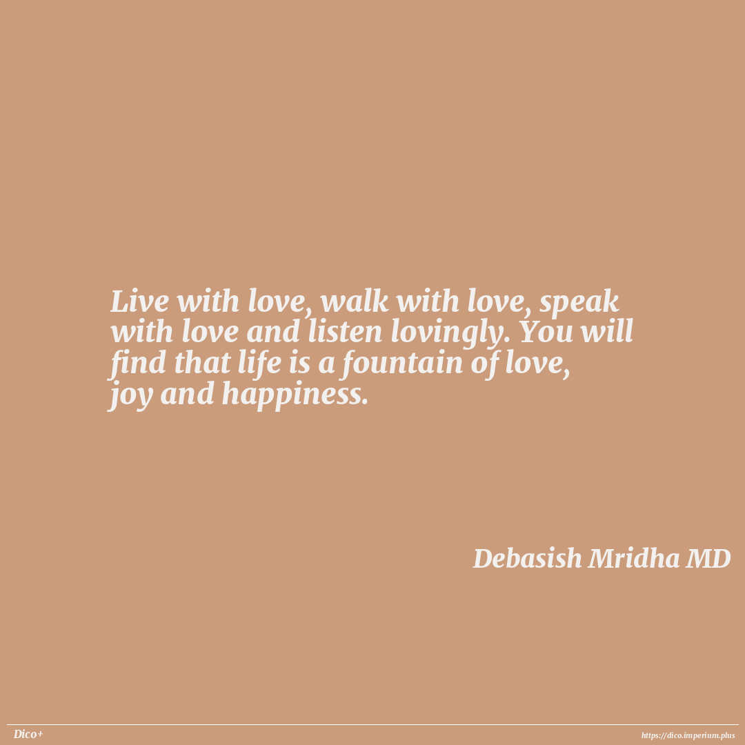 Live with love, walk with love, speak with love and listen with love. You will find that life is a fountain of love, joy and happiness.