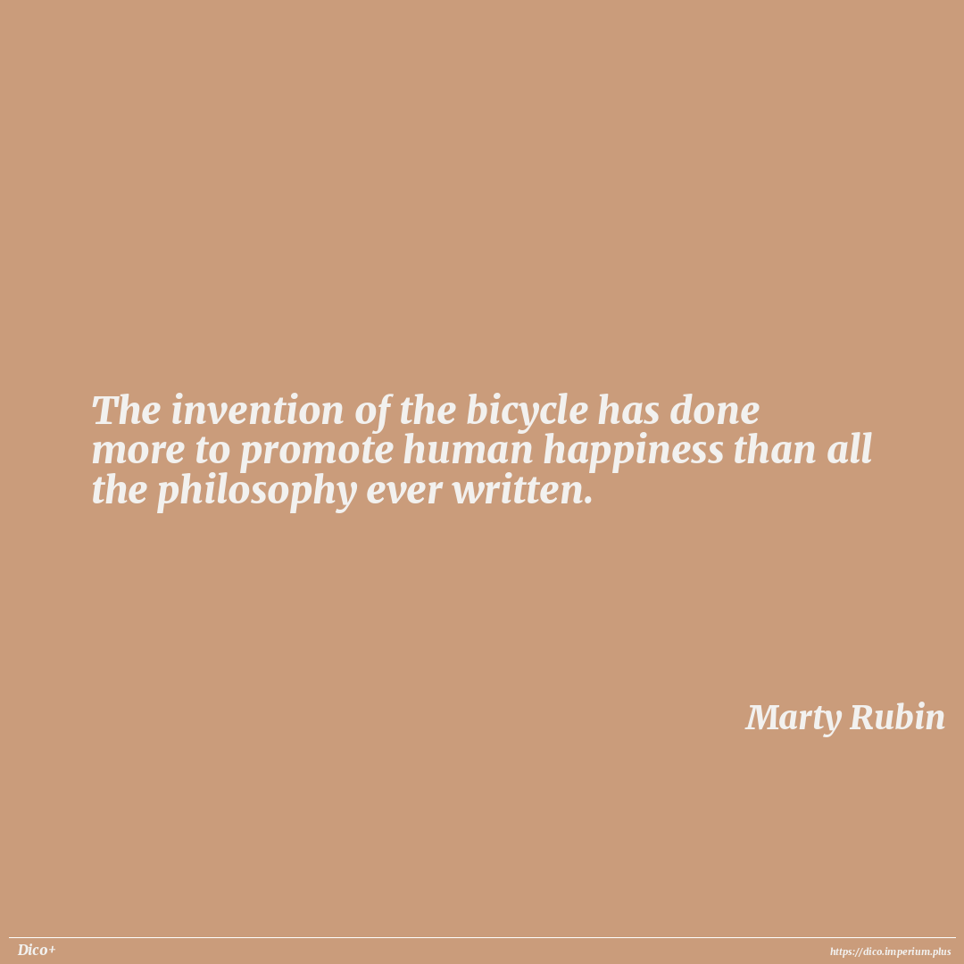 The invention of the bicycle has done more to promote human happiness than all the philosophy ever written.