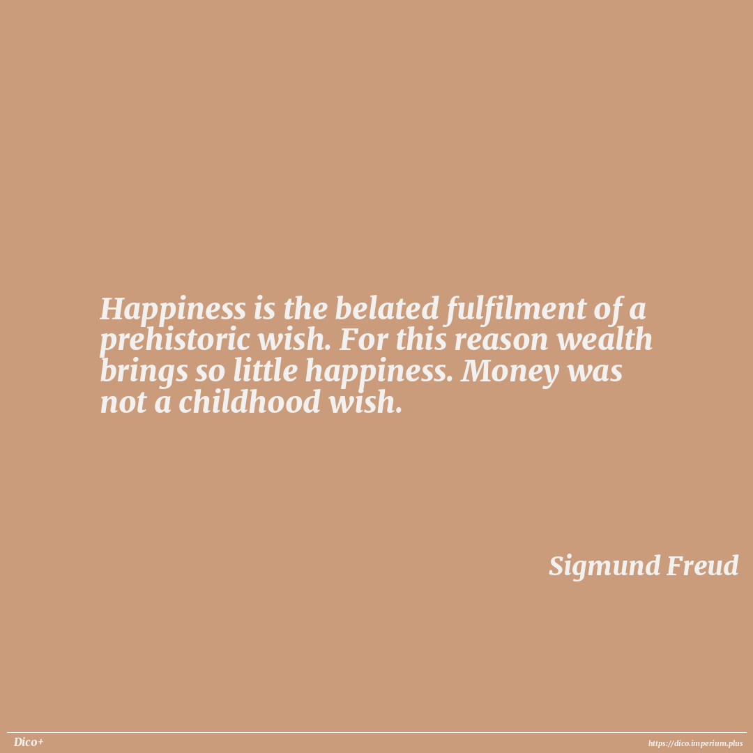 Happiness is the belated fulfilment of a prehistoric wish. For this reason wealth brings so little happiness. Money was not a childhood wish.