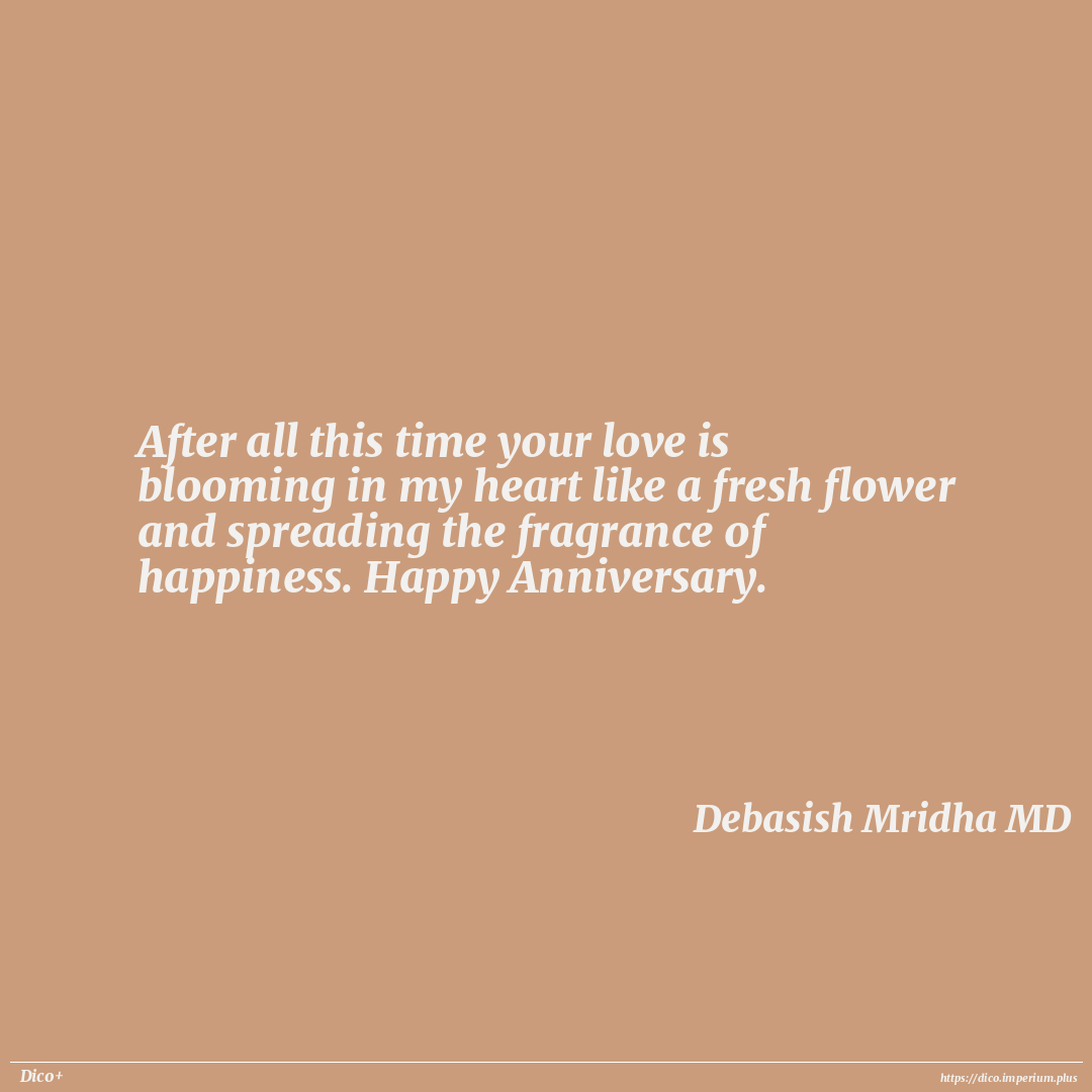 After all this time your love is blooming in my heart like a fresh flower and spreading the fragrance of happiness. Happy Anniversary.