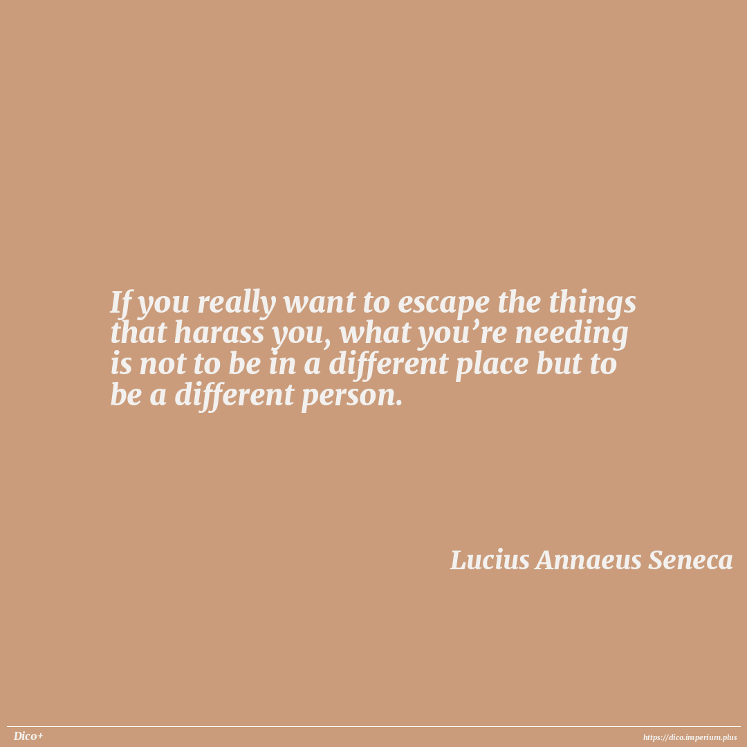 If you really want to escape the things that harass you, what you’re needing is not to be in a different place but to be a different person.