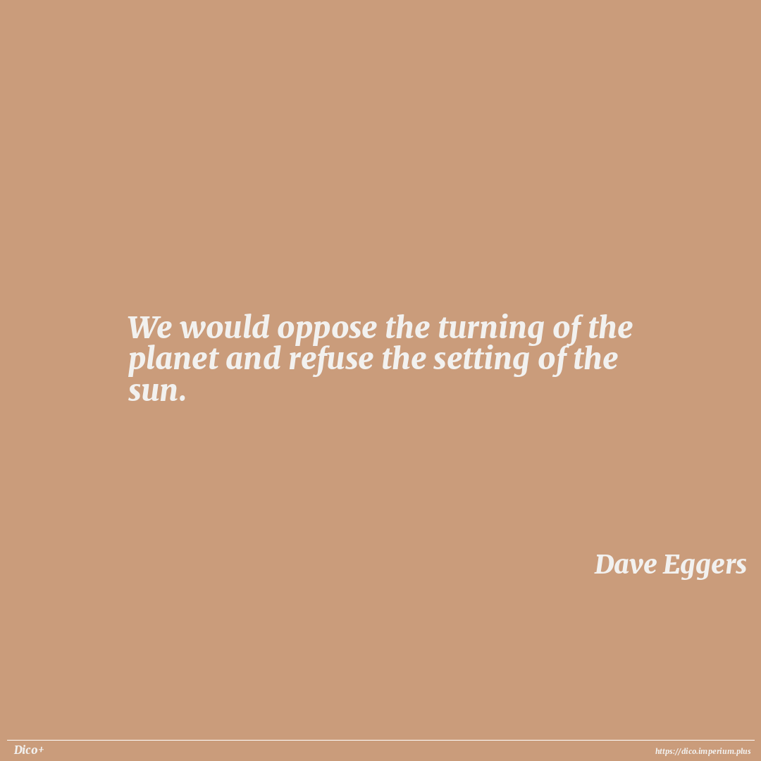 We would oppose the turning of the planet and refuse the setting of the sun.
