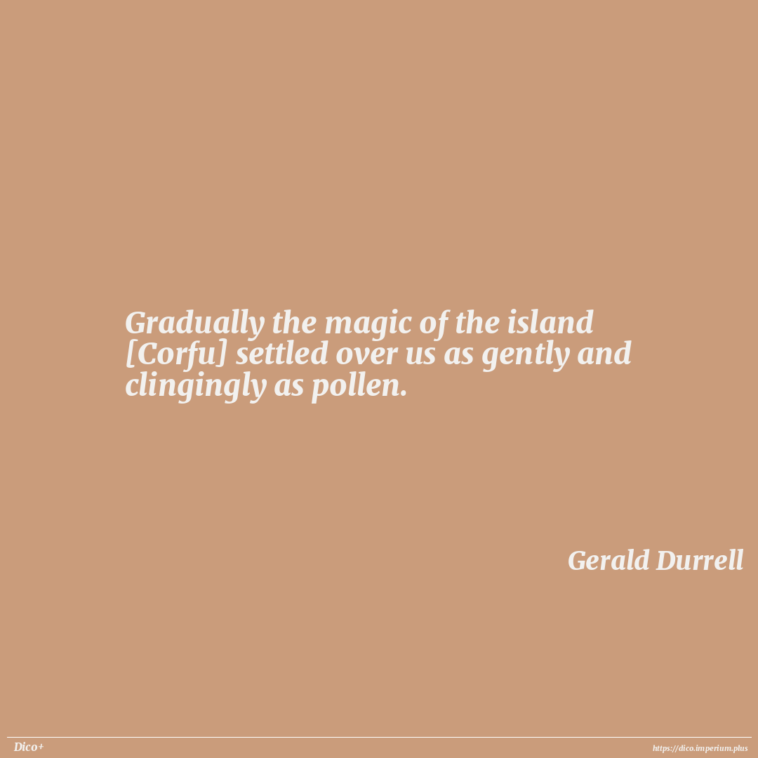 Gradually the magic of the island [Corfu] settled over us as gently and clingingly as pollen.