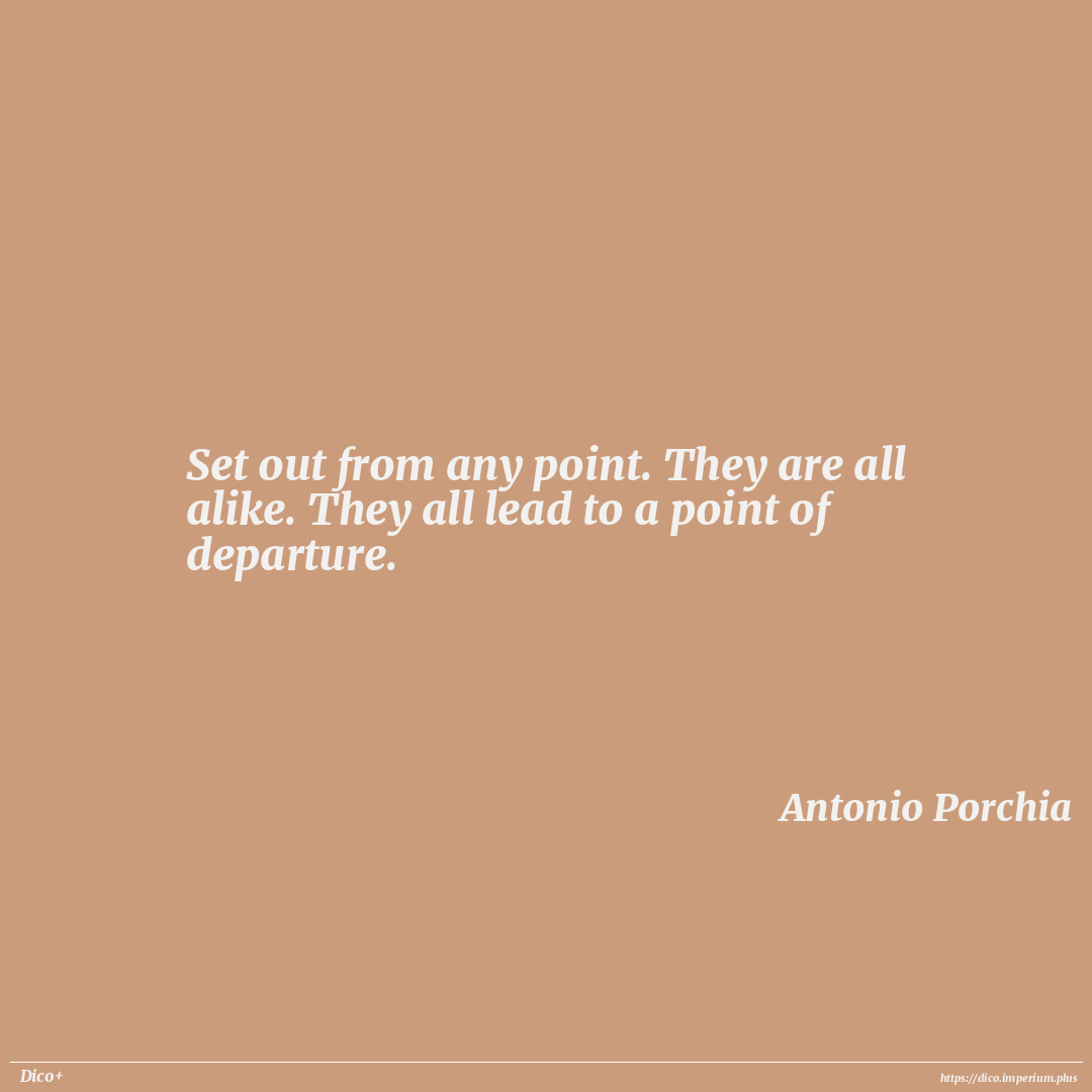 Set out from any point. They are all alike. They all lead to a point of departure.