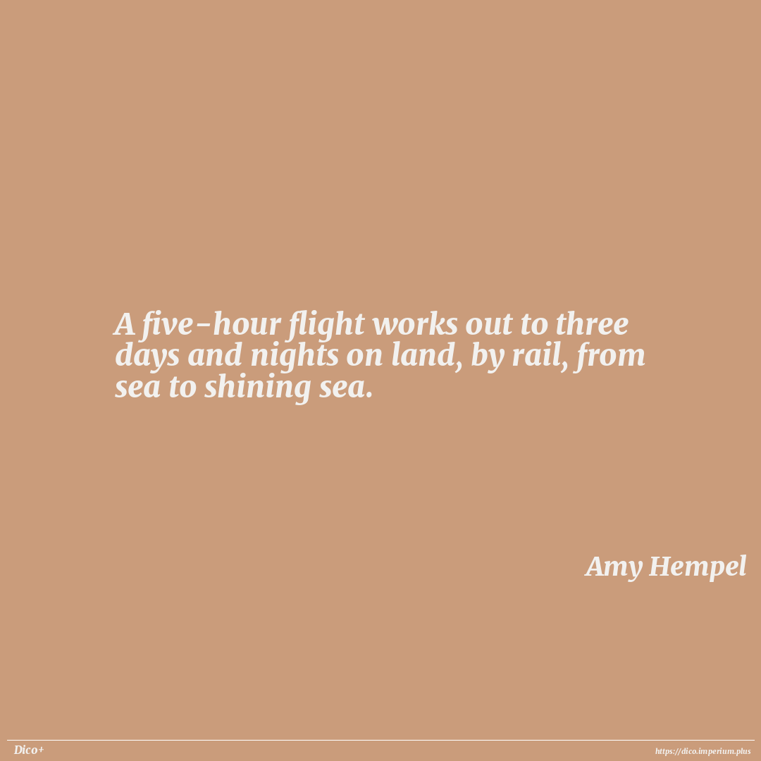 A five-hour flight works out to three days and nights on land, by rail, from sea to shining sea.