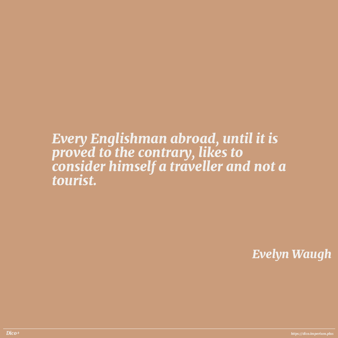 Every Englishman abroad, until it is proved to the contrary, likes to consider himself a traveller and not a tourist.