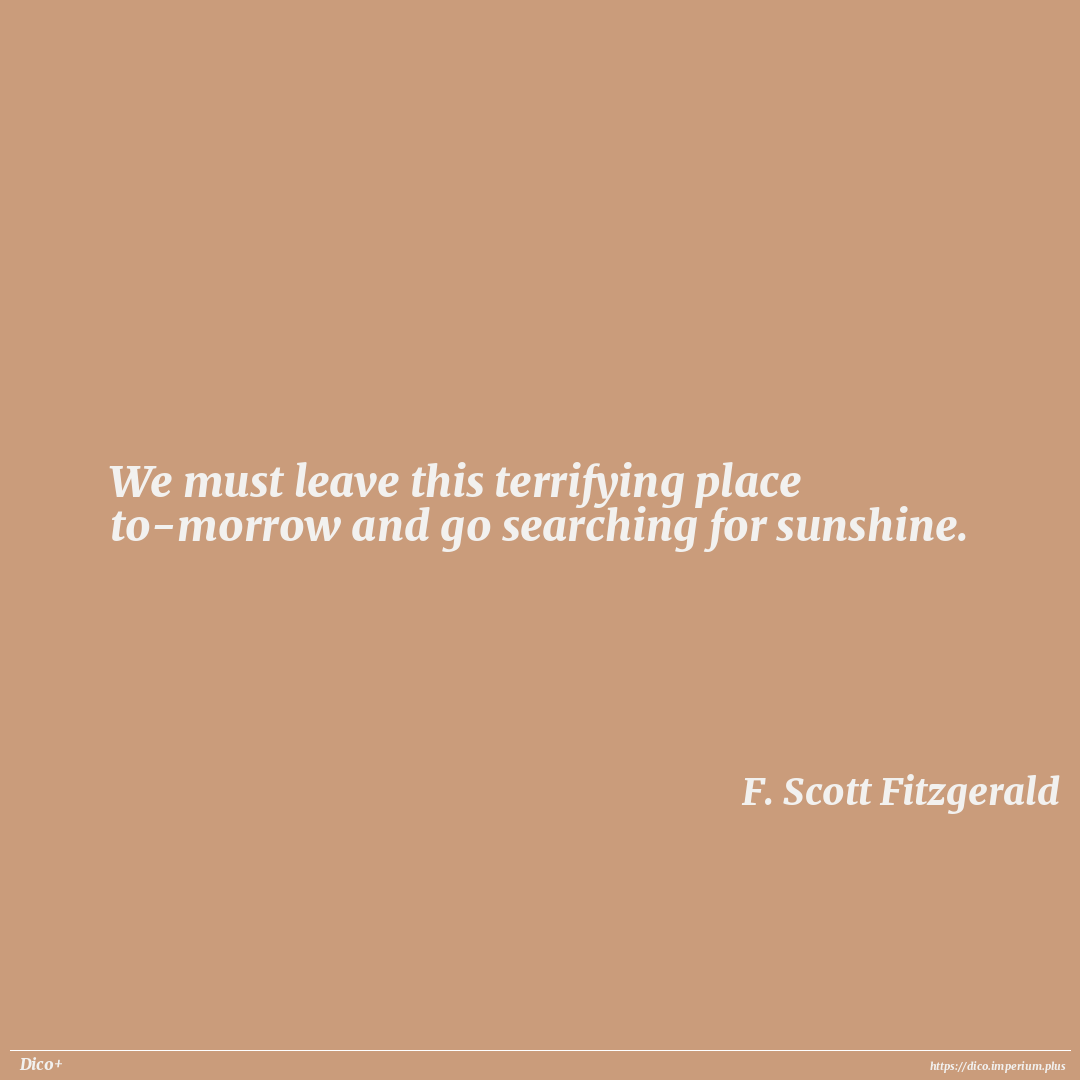We must leave this terrifying place to-morrow and go searching for sunshine.