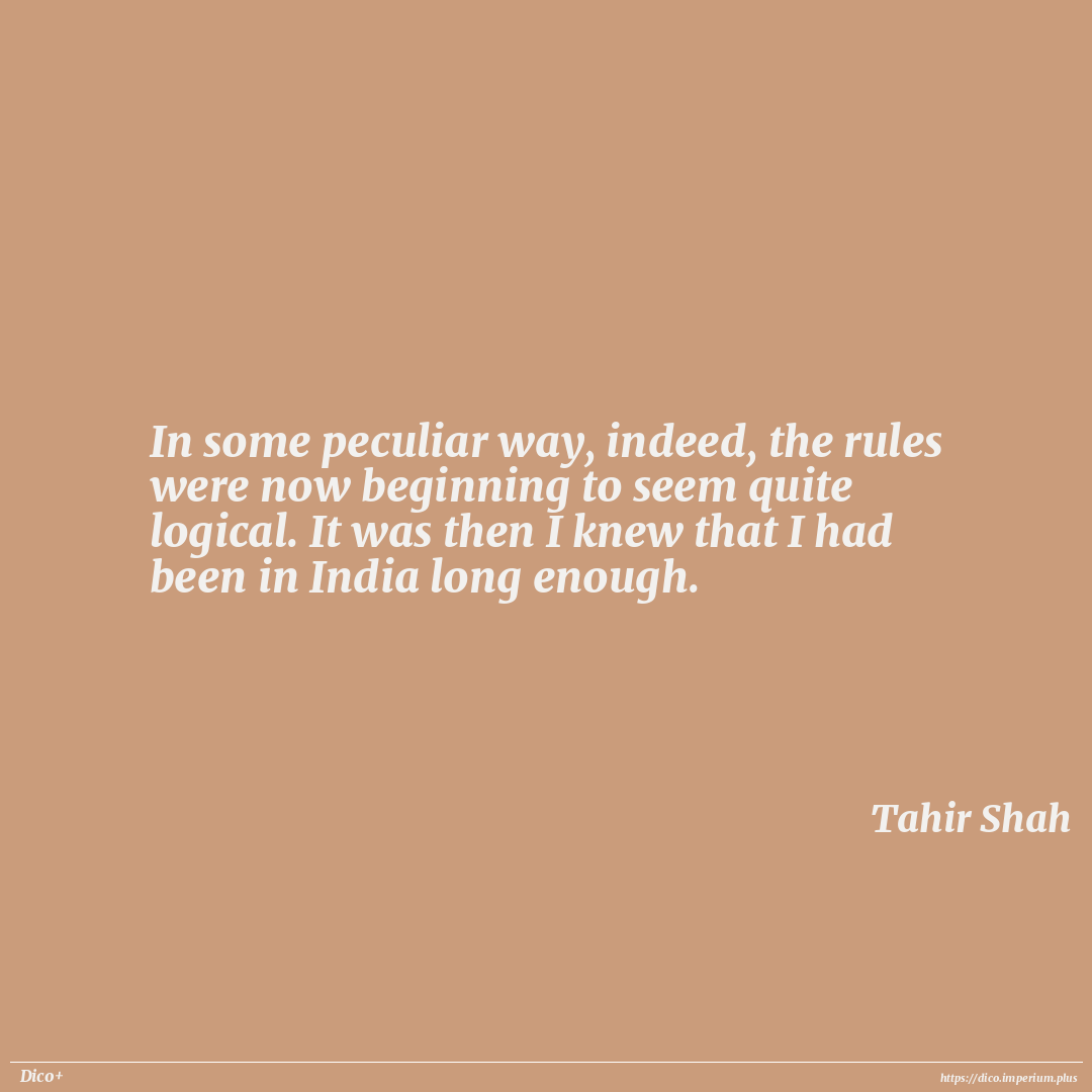 In some peculiar way, indeed, the rules were now beginning to seem quite logical. It was then I knew that I had been in India long enough.