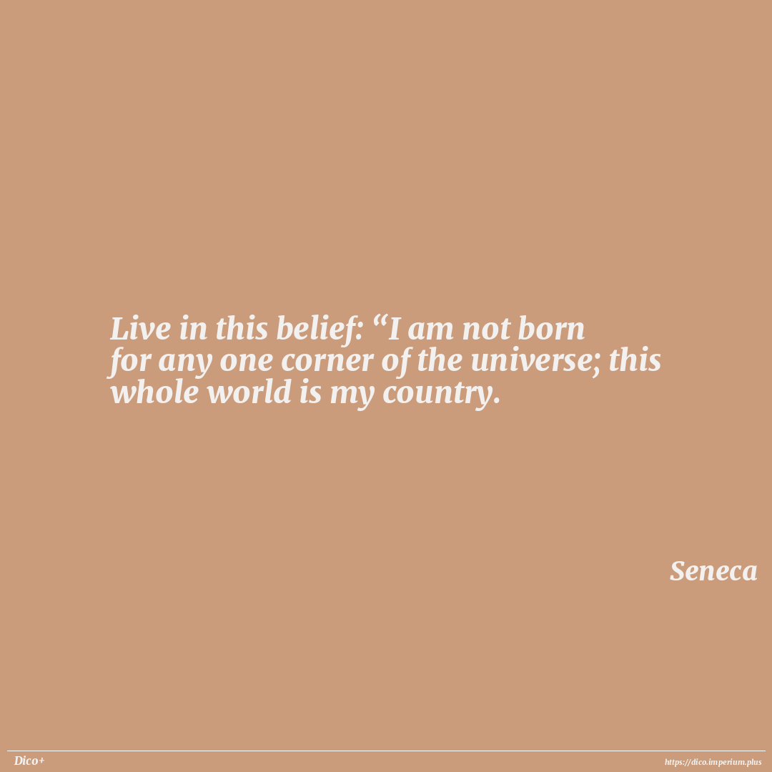 Live in this belief: “I am not born for any one corner of the universe; this whole world is my country.