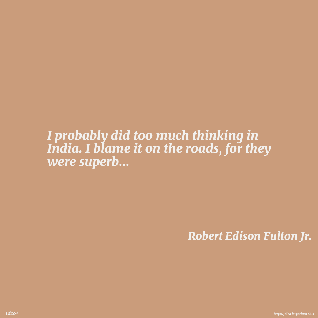 I probably did too much thinking in India. I blame it on the roads, for they were superb...