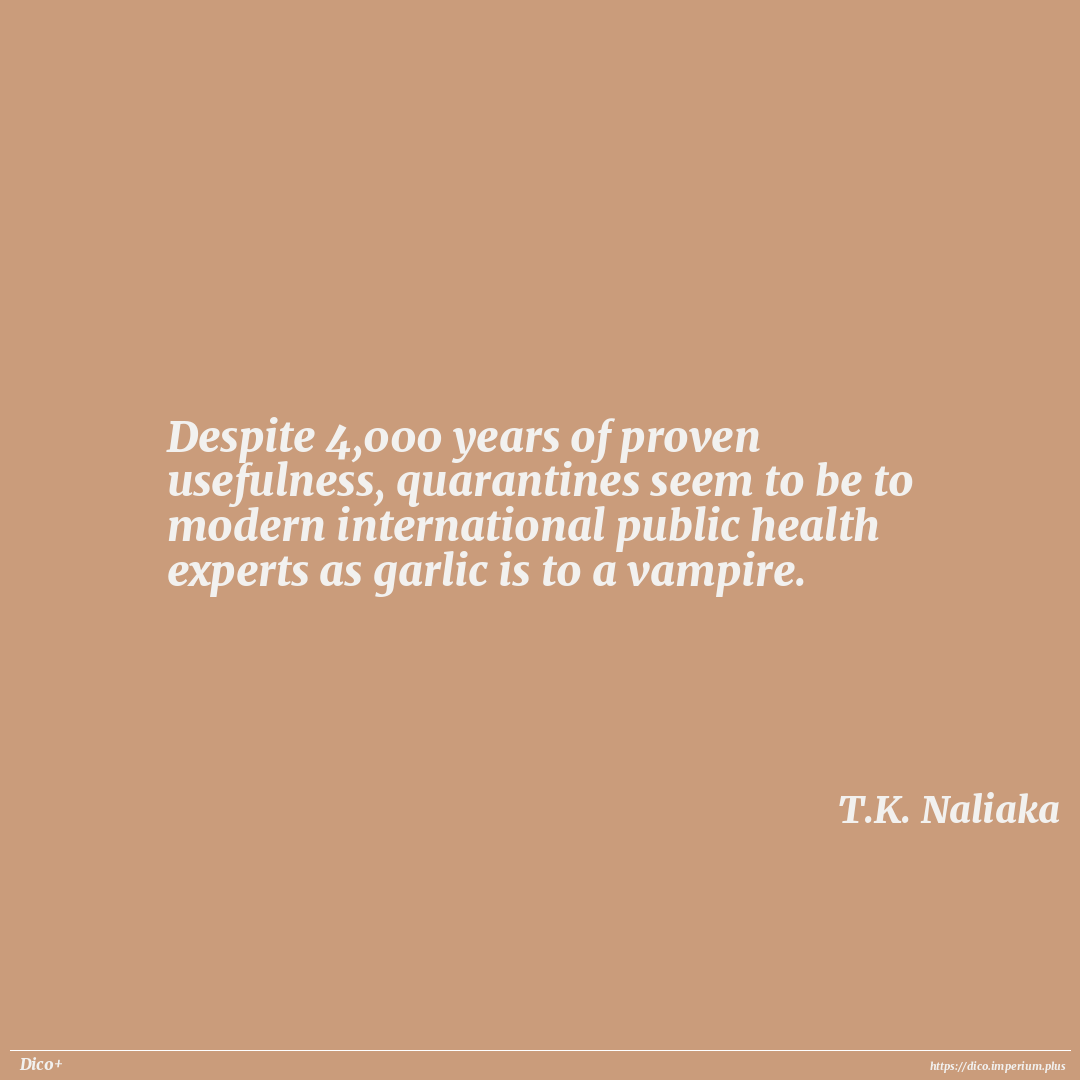 Despite 4,000 years of proven usefulness, quarantines seem to be to modern international public health experts as garlic is to a vampire.