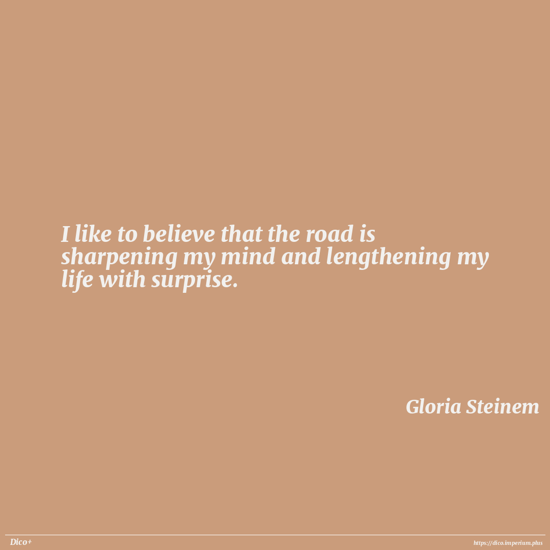 I like to believe that the road is sharpening my mind and lengthening my life with surprise.