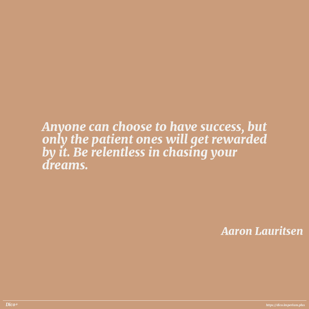 Anyone can choose to have success, but only the patient ones will get rewarded by it. Be relentless in chasing your dreams.