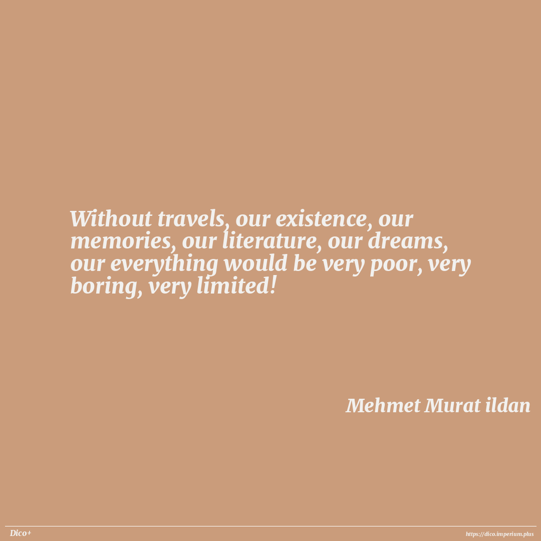 Without travels, our existence, our memories, our literature, our dreams, our everything would be very poor, very boring, very limited!