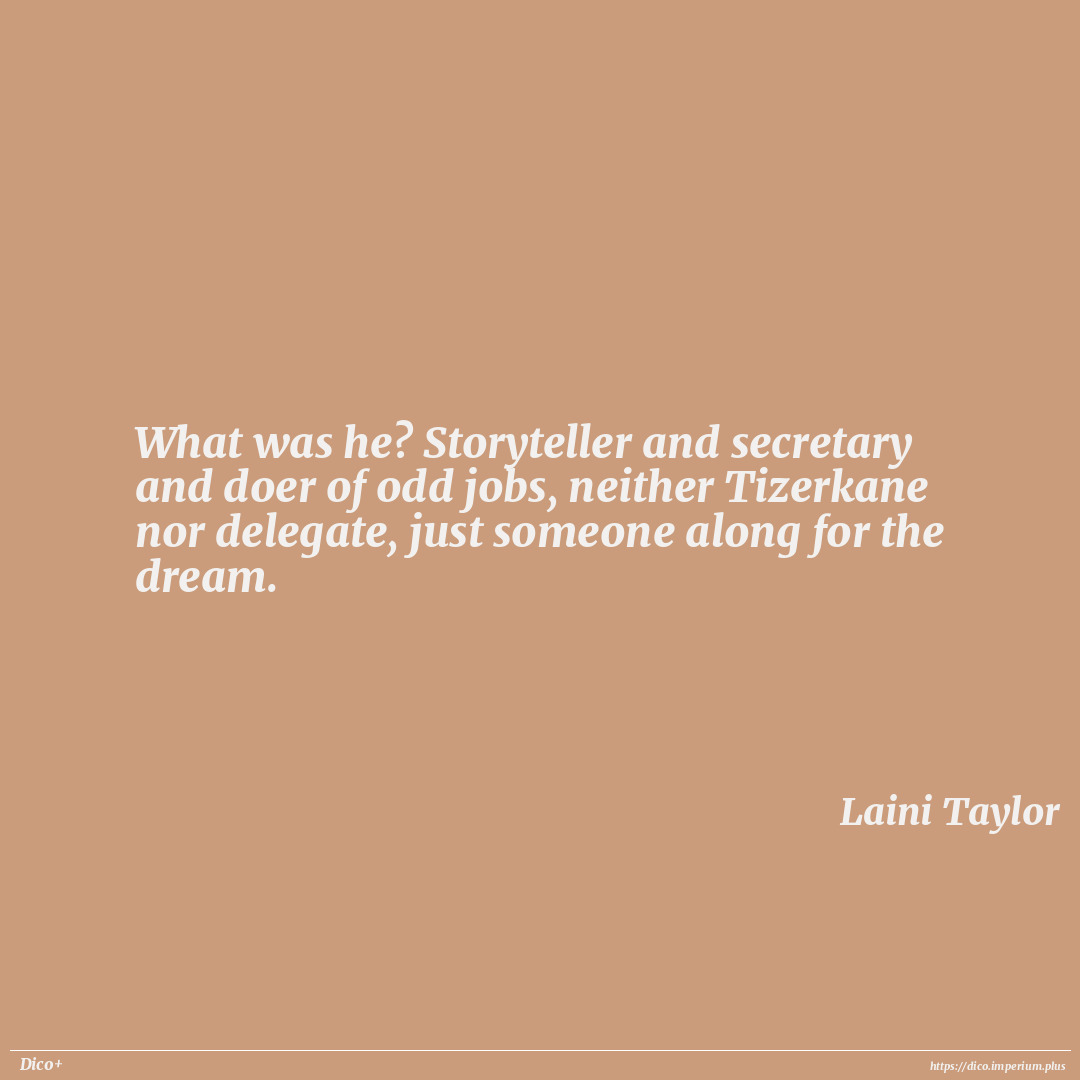 What was he? Storyteller and secretary and doer of odd jobs, neither Tizerkane nor delegate, just someone along for the dream.