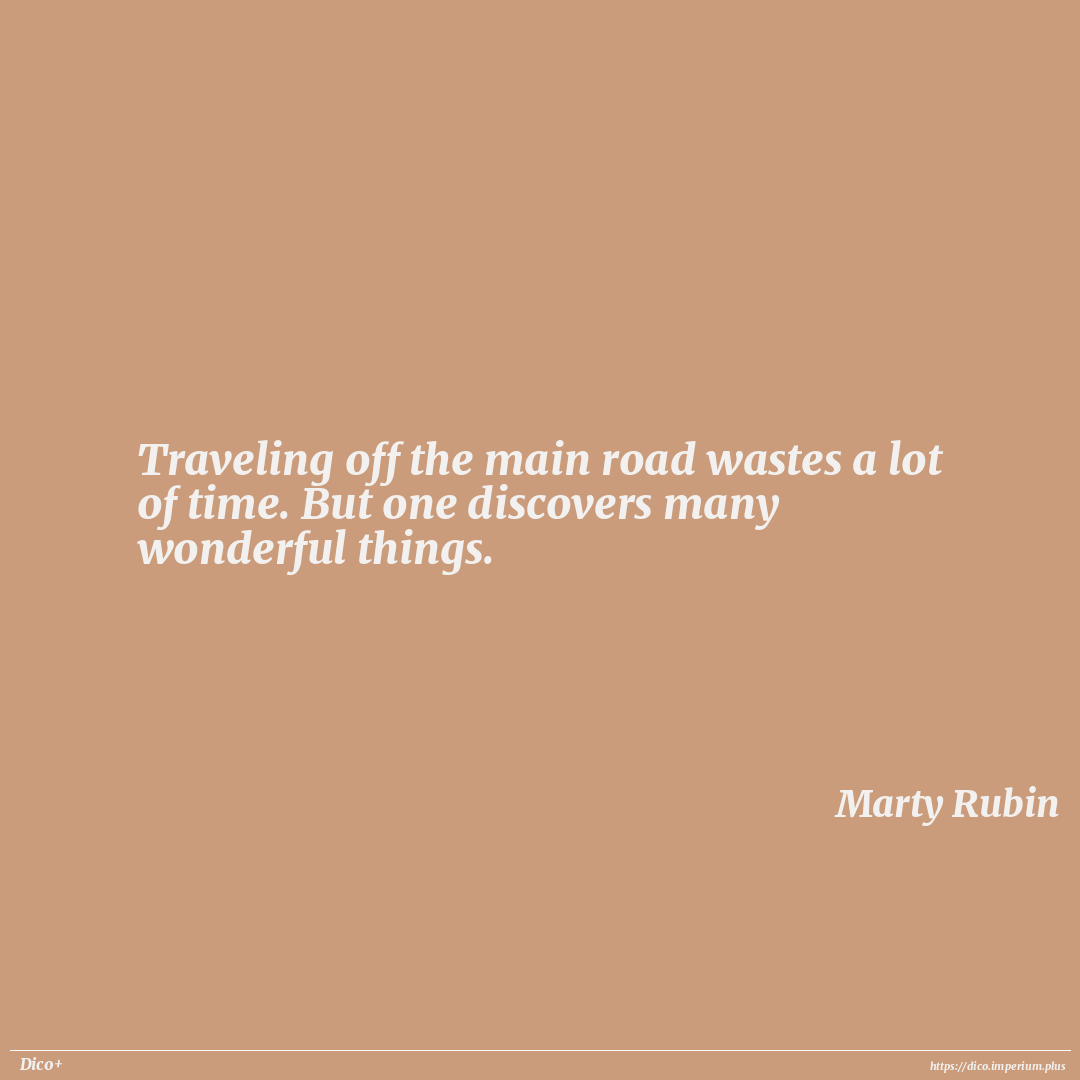 Traveling off the main road wastes a lot of time. But one discovers many wonderful things.