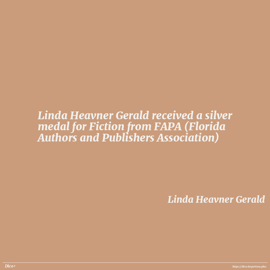 Linda Heavner Gerald received a silver medal for Fiction from FAPA (Florida Authors and Publishers Association)