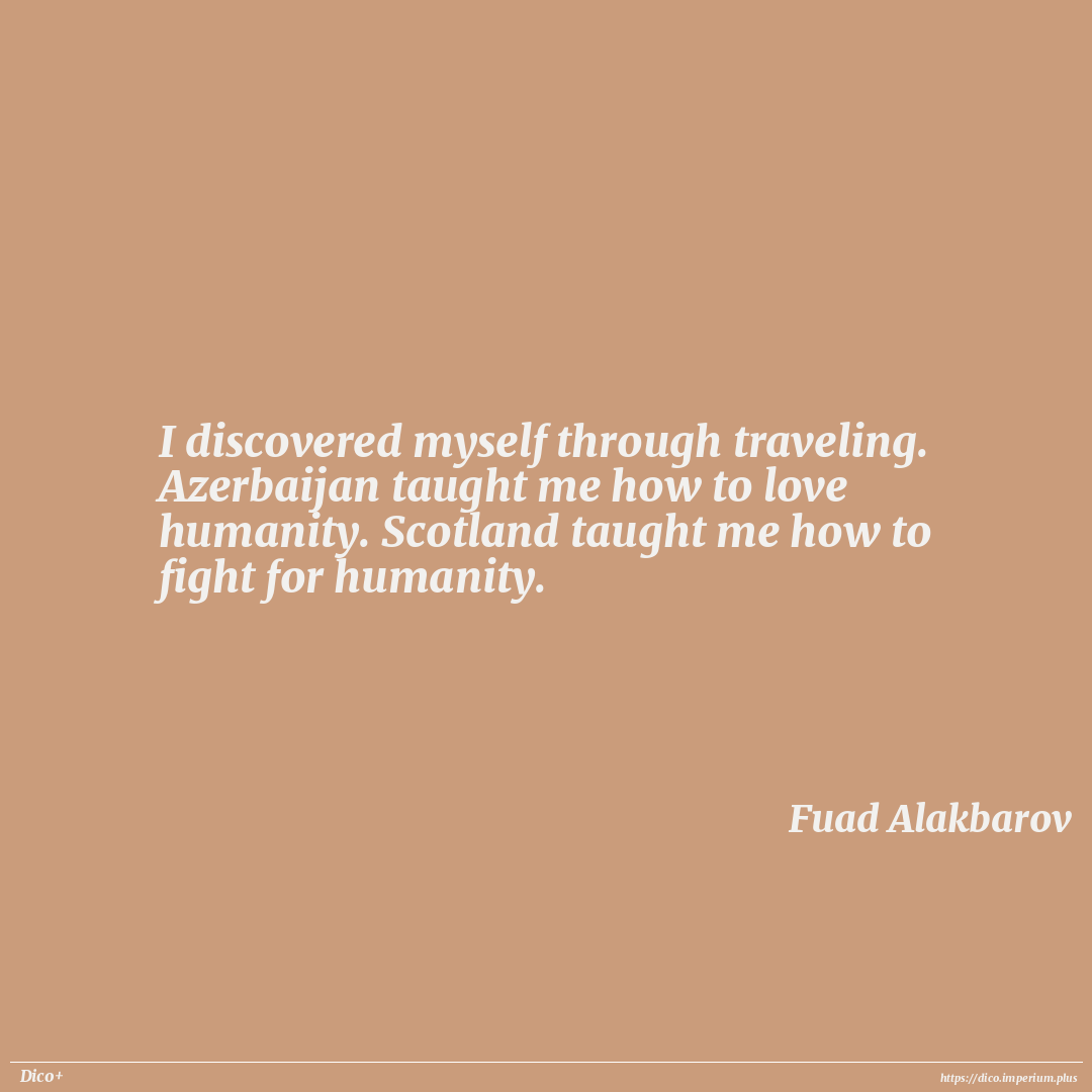 I discovered myself through traveling. Azerbaijan taught me how to love humanity. Scotland taught me how to fight for humanity.