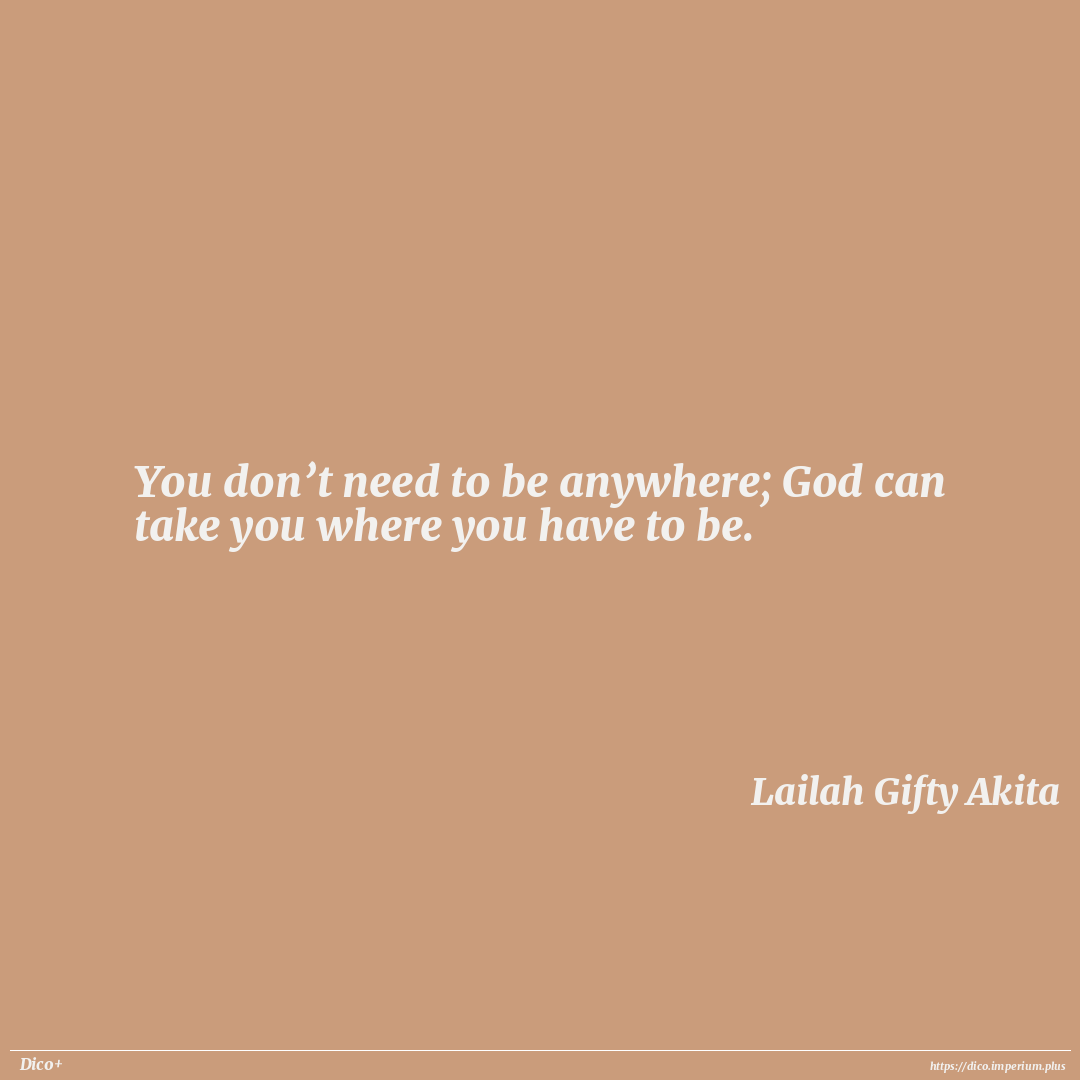 You don’t need to be anywhere; God can take you where you have to be.