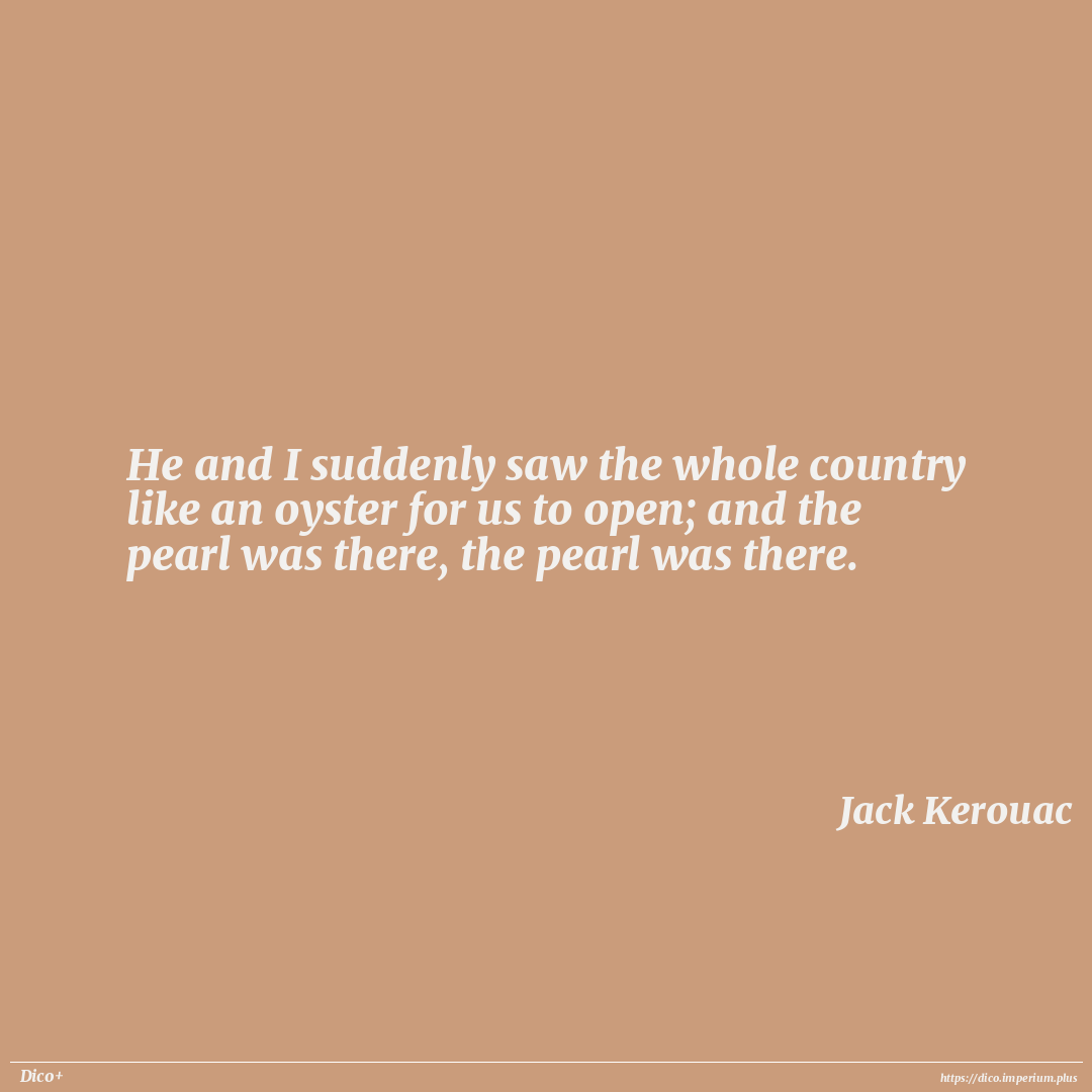 He and I suddenly saw the whole country like an oyster for us to open; and the pearl was there, the pearl was there.