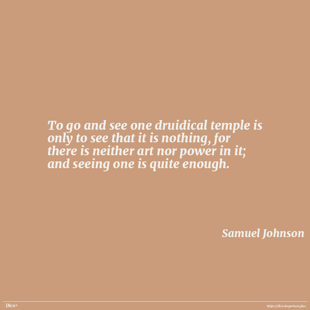 To go and see one druidical temple is only to see that it is nothing, for there is neither art nor power in it; and seeing one is quite enough.