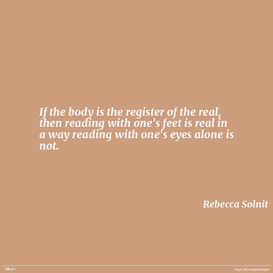 If the body is the register of the real, then reading with one's feet is real in a way reading with one's eyes alone is not.