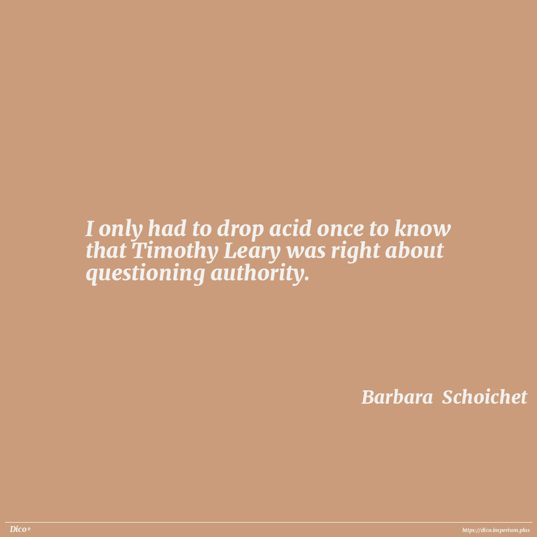 I only had to drop acid once to know that Timothy Leary was right about questioning authority.