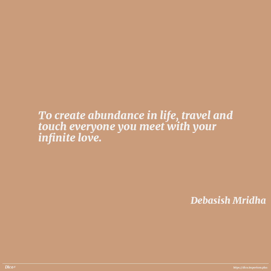 To create abundance in life, travel and touch everyone you meet with your infinite love.