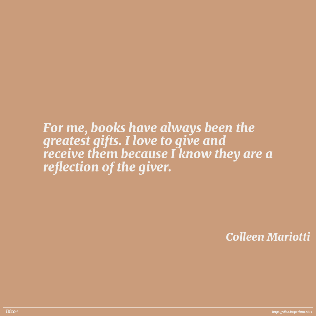 For me, books have always been the greatest gifts. I love to give and receive them because I know they are a reflection of the giver.