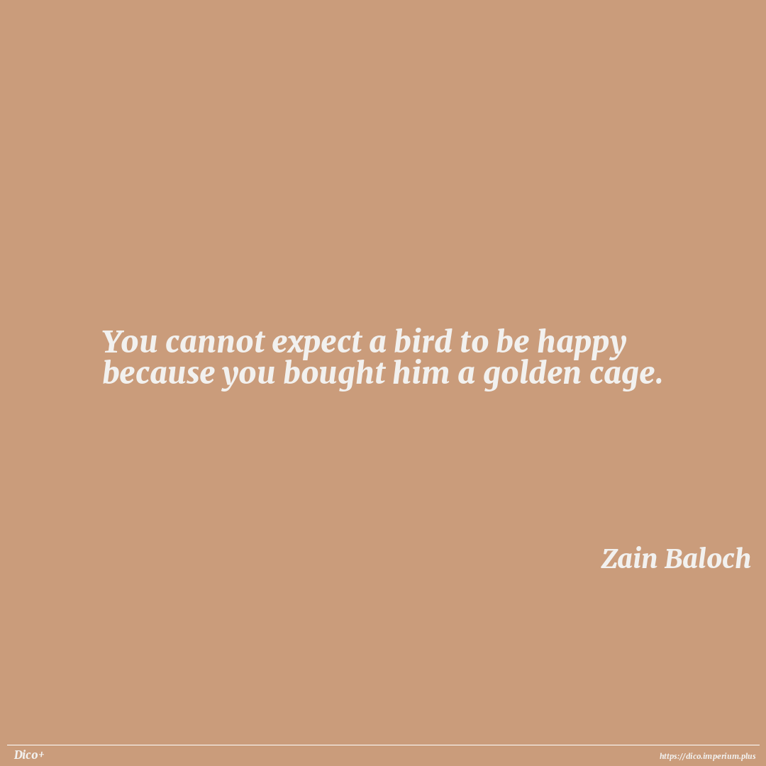 You cannot expect a bird to be happy because you bought him a golden cage.
