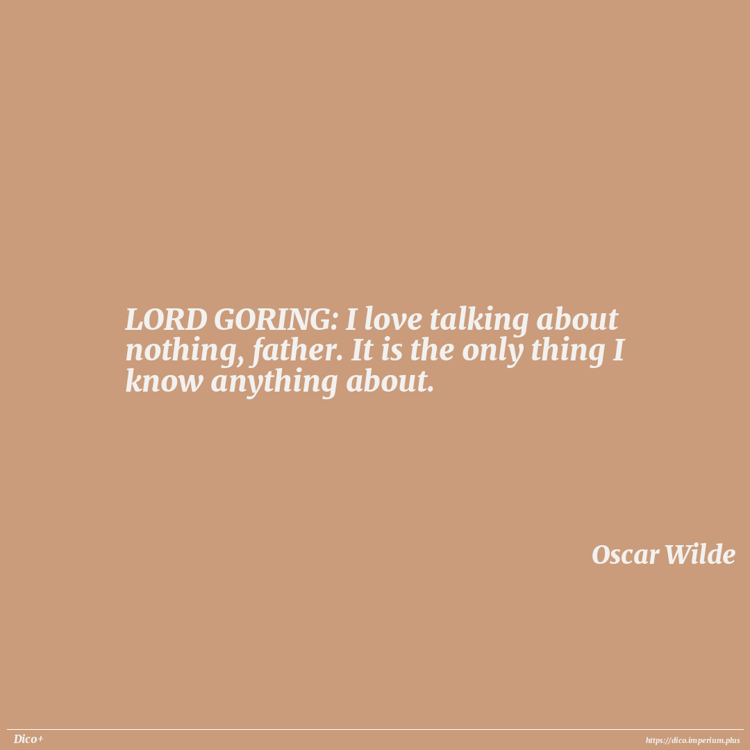 LORD GORING: I love talking about nothing, father. It is the only thing I know anything about.